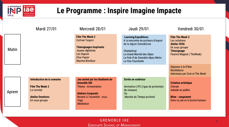 En janvier 2026, dans le cadre de la semaine Kaléidoscope, 4 enseignantes et 14 intervenants ont embarqué 60 élèves pour explorer les transitions sur 3 jours et demi au sein du parcours “Inspire, Imagine, Impacte : explorations vers un futur désirable”.